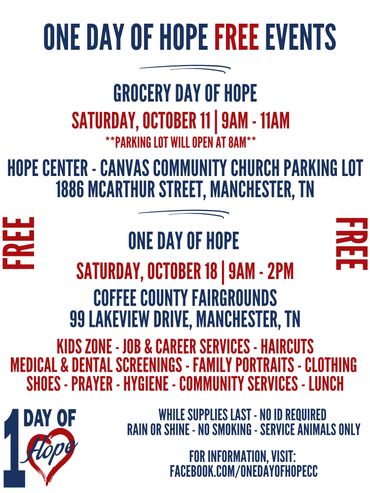 One Day of Hope Coffee County is a 501c3 nonprofit organization leading a joint effort of numerous churches, individuals, businesses, and community groups across the county.